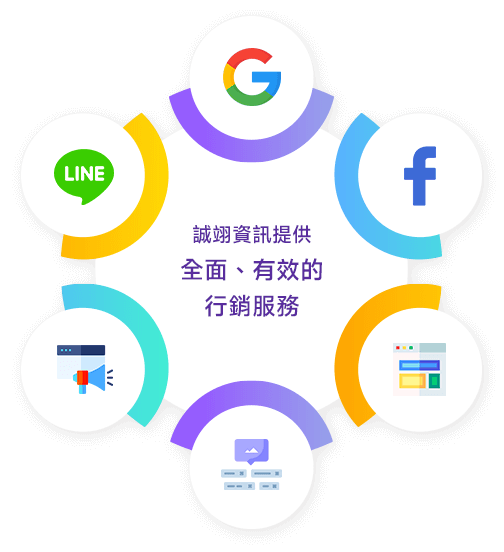 無論是Google、Facebook、LINE、YouTube還是Instagram,誠翊資訊都能𠦢助您!