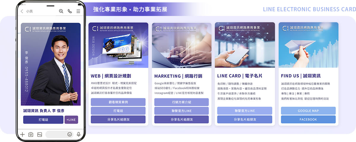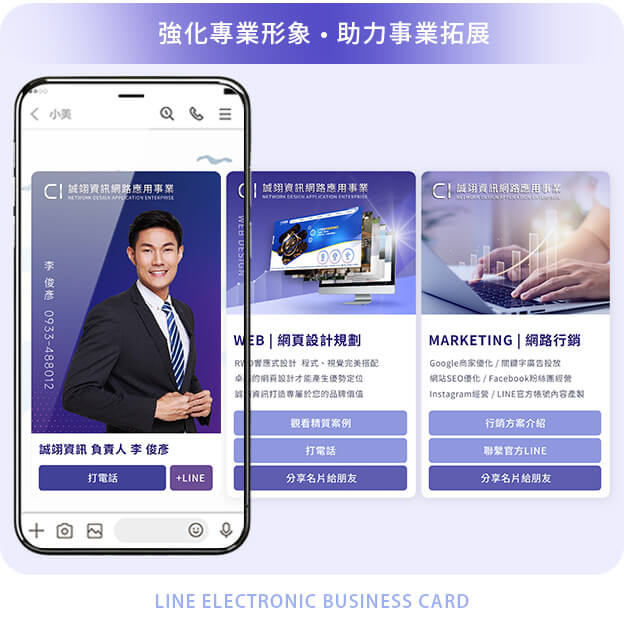 LINE數位名片成為新時代必備行銷利器!完美結合數位行銷,讓您的名片隨時在線、即點即開,一鍵立即分享,行銷無界限。